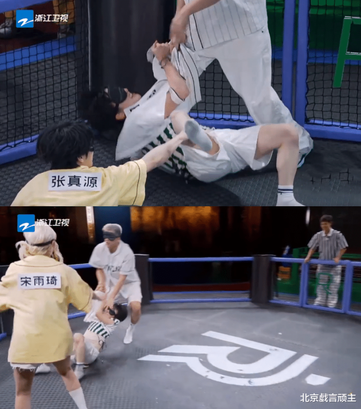 随后在一阵混战中,谢依霖成功OUT沙溢,第二回合,白鹿出局,第三回合,张真源,范丞丞联盟,二人围攻一个谢依霖一个女生,这样的对决,个人觉得赢了不光彩,输了还丢人,怪就怪导演组设置的规则有问题,正确的操作应该是让体型‘力量’都差不多的嘉宾进行对决,而不是杂乱无章地轮到谁,谁就登场。